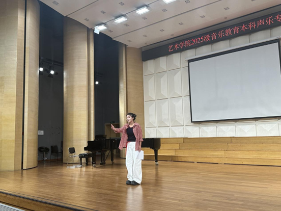 活动现场,布置专业且庄重,舞台上钢琴静立,灯光恰到好处。2025级音乐教育本科声乐专业的新生们依次登台,通过演唱声乐作品,展示自己的专业功底。同学们或深情演绎抒情曲目,或激昂唱响富有力量的作品,将自己对音乐的理解与热爱融入歌声之中。