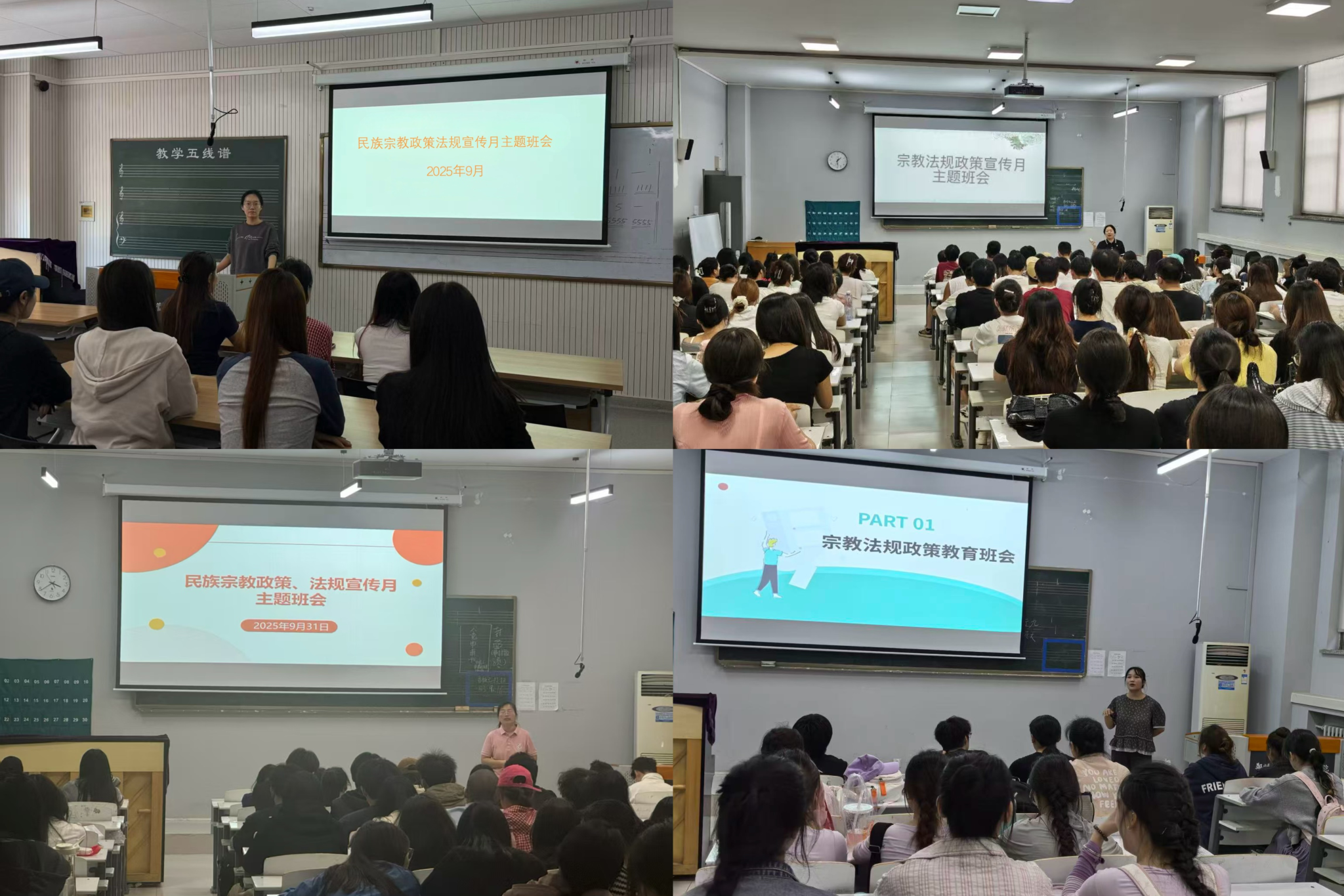 为进一步延伸学习触角、覆盖青年学生群体,学院于10月中旬前组织全院32个班级陆续开展“宗教政策法规宣传”主题班会。各班通过观看教育视频、分享民族团结故事、开展知识问答等形式,引导学生正确认识宗教本质,深刻理解“宗教信仰自由”与“宗教与教育相分离”的政策内涵,自觉抵制各类有神论思想的侵蚀。
