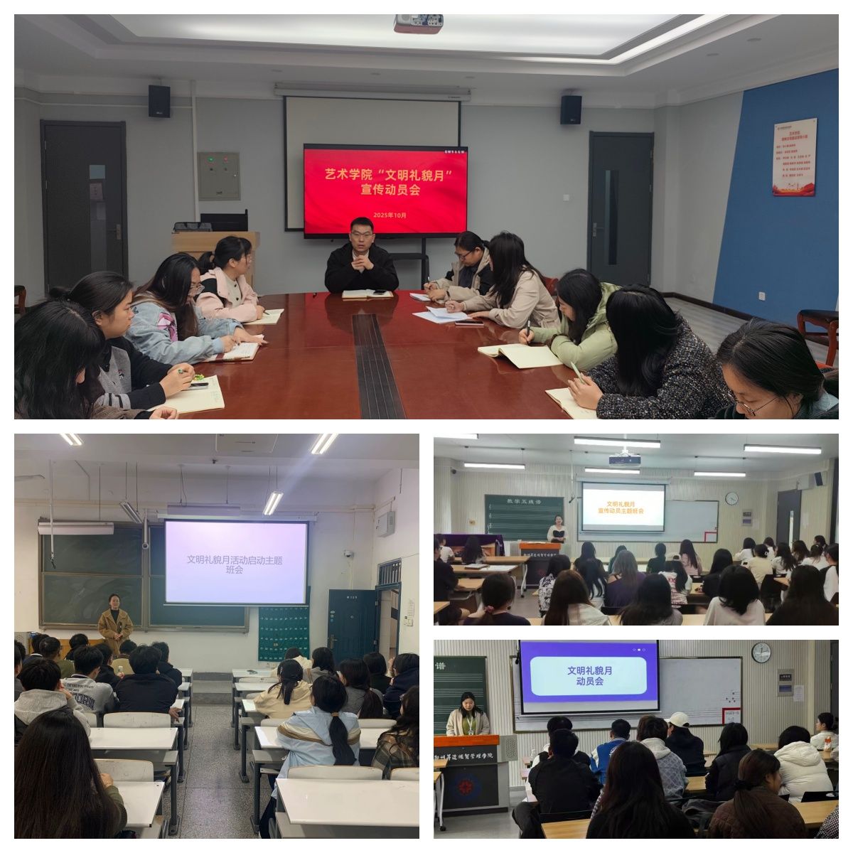 为深入贯彻落实学校文明礼貌月活动精神,10月16日至10月17日,艺术学院积极行动,先后召开辅导员工作部署会及各班级专题班会,层层动员,正式拉开了学院“文明礼貌月”系列活动的序幕。