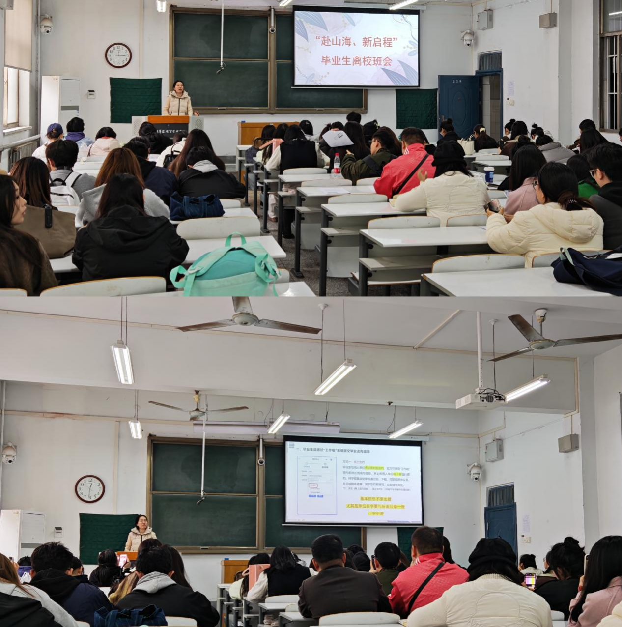 此次班会兼具实用性与温情,既为毕业生们厘清了离校各项流程要求,也传递了专业的关怀与期许。同学们纷纷表示,将严格按照要求规范办理各项离校手续,带着在校期间积累的专业素养与深厚同窗情谊,自信奔赴人生新山海。
