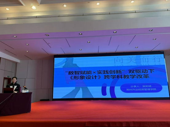 本次培训中,我校艺术学院公共艺术教研室主任吴则斌教授很荣幸受邀进行案例分享。吴主任以“‘数智赋能x实践创新’双驱动下《形象设计》跨学科教学改革”为主题,分享内容既展现了课程改革的具体路径,得到现场同行的关注与认可。