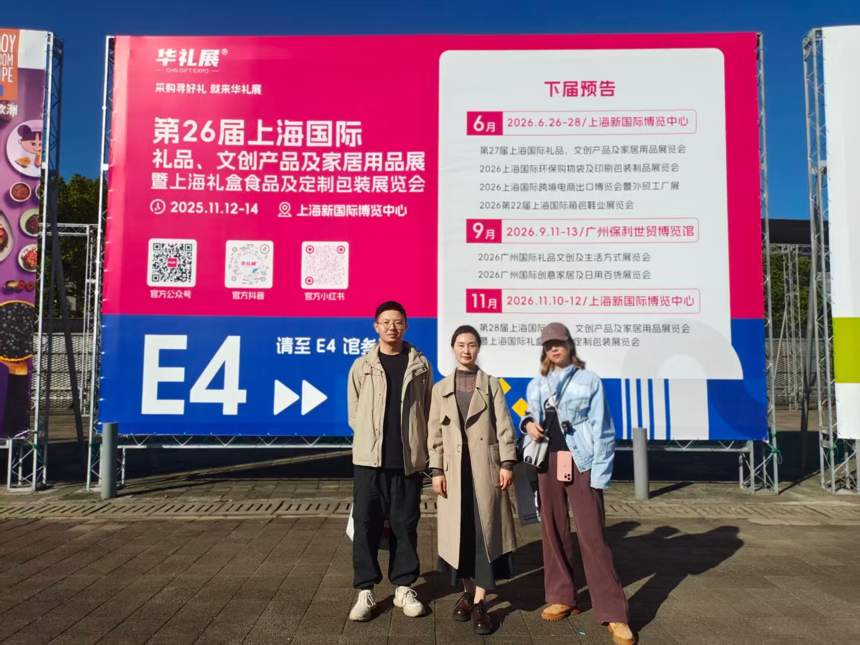 为把握行业前沿动态,深化产教融合,2025年11月12日至14日,艺术学院视觉传达设计教研室主任郭红秀率骨干教师赴上海新国际博览中心,参观“第26届上海国际礼品文创产品及家具用品展暨上海礼盒食品及定制包装展览会”。