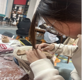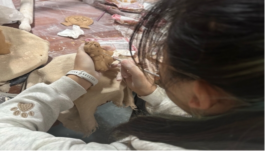 11月14日,艺术学院2025级视觉传达专升本1班团支部在校园陶艺中心开展“陶铸蓝图·青春聚力”主题团日活动。全班团员以陶土为媒介,将国徽、士兵等承载家国情怀的元素融入创作,在捏塑、雕刻与彩绘中,把宏大规划转化为可触摸的艺术模型,让青春感悟与时代使命在窑火中定格。