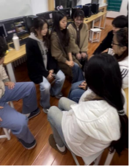 活动以“纪律课堂—对照检视—创意践行”为主线层层推进。在纪律课堂环节,学院团委老师结合短视频案例与校园真实场景,生动解读了团员义务、纪律处分类型等核心条款,用“身边事”警醒“身边人”。随后的快问快答环节,“多次无故不参加团课会怎样?”“网络言论有哪些红线?”等问题引发全员互动,回答正确的同学将获得定制团徽书签,让纪律知识在趣味问答中入脑入心。中场休息后,上课的全体团员以6-8人小组为单位开展组织生活会,对照团章团规填写《个人纪律检视清单》,梳理专业学习中原创设计践行、团队协作表现及日常行为规范等方面的优缺点。“一分钟温暖建议”环节中,大家互相提出正向建设性意见,在坦诚交流中实现共同成长。