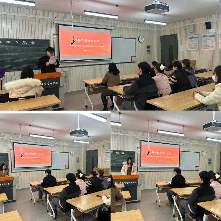 11月26日中午,艺术学院音乐表演专业和舞蹈表演专业学生第三党支部在艺术楼302教室召开预备党员转正大会,讨论代一洋同志的转正事宜。党支部全体党员参加会议,大会由党支部书记杨栋同志主持。
