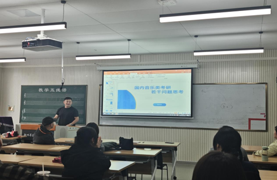 9月18日中午,器乐教研室在艺术学院301教室组织了器乐教学研讨会,由专职教师裴照亮进行了题为《国内音乐类考研若干问题思考》的研讨会,交流汇报,教研室全体教师参加。