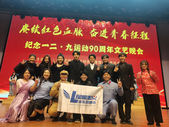 2025年12月9日晚,由校团委主办,艺术学院承办的“赓续红色血脉 奋进青春征程”纪念一二·九运动90周年文艺晚会在郑州升达经贸管理学院思源会隆重举行,理想主义·音乐戏剧坊派出演出小分队,选送两个作品积极参与其中。