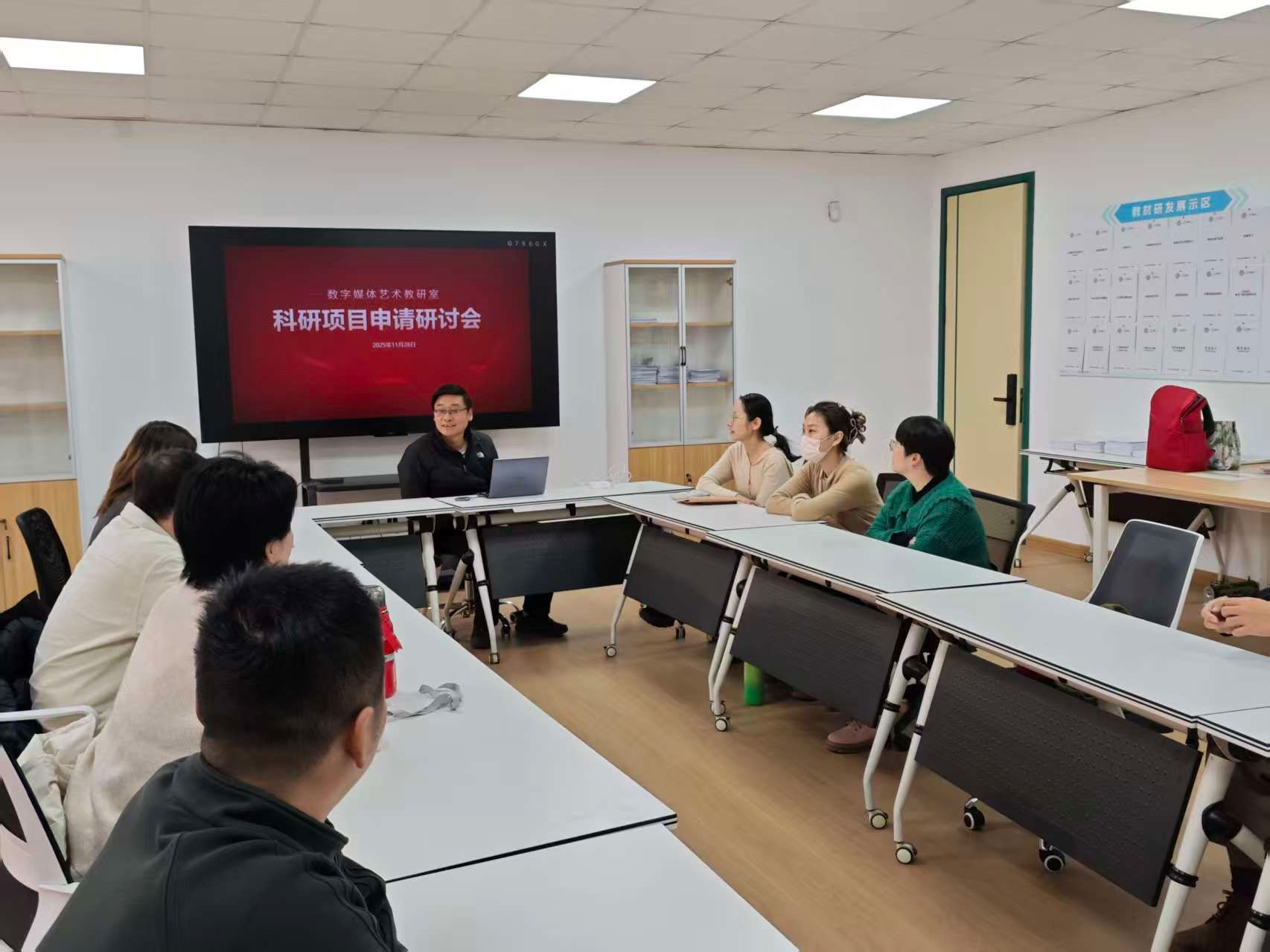 2025年12月4日下午,数字媒体艺术教研室在商管楼108教室组织召开科研项目申请研讨会。会议由教研室主任杨世英主持,全体专业教师参会。会议旨在梳理科研项目申报要点,分享申报经验,提升教师科研项目申报质量与成功率,助力教研室科研工作高质量发展。