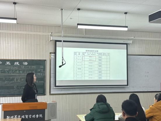 活动中,龚雪老师结合课程进度安排,围绕河南民歌的风格特点、教学难点与实践方法展开交流,从乐谱解析到演唱技巧,梳理了地方民歌教学中的实操策略。现场教师针对教学细节展开研讨,共同探索民歌传承与课堂教学的融合路径。