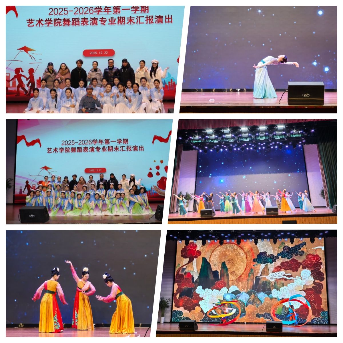 2025年12月22日下午,艺术学院2023级、2024级舞蹈表演专业本科班和2025级舞蹈表演专升本班汇报演出在思源会馆圆满举行。舞蹈教研室全体教师现场观摩并进行专业评分。