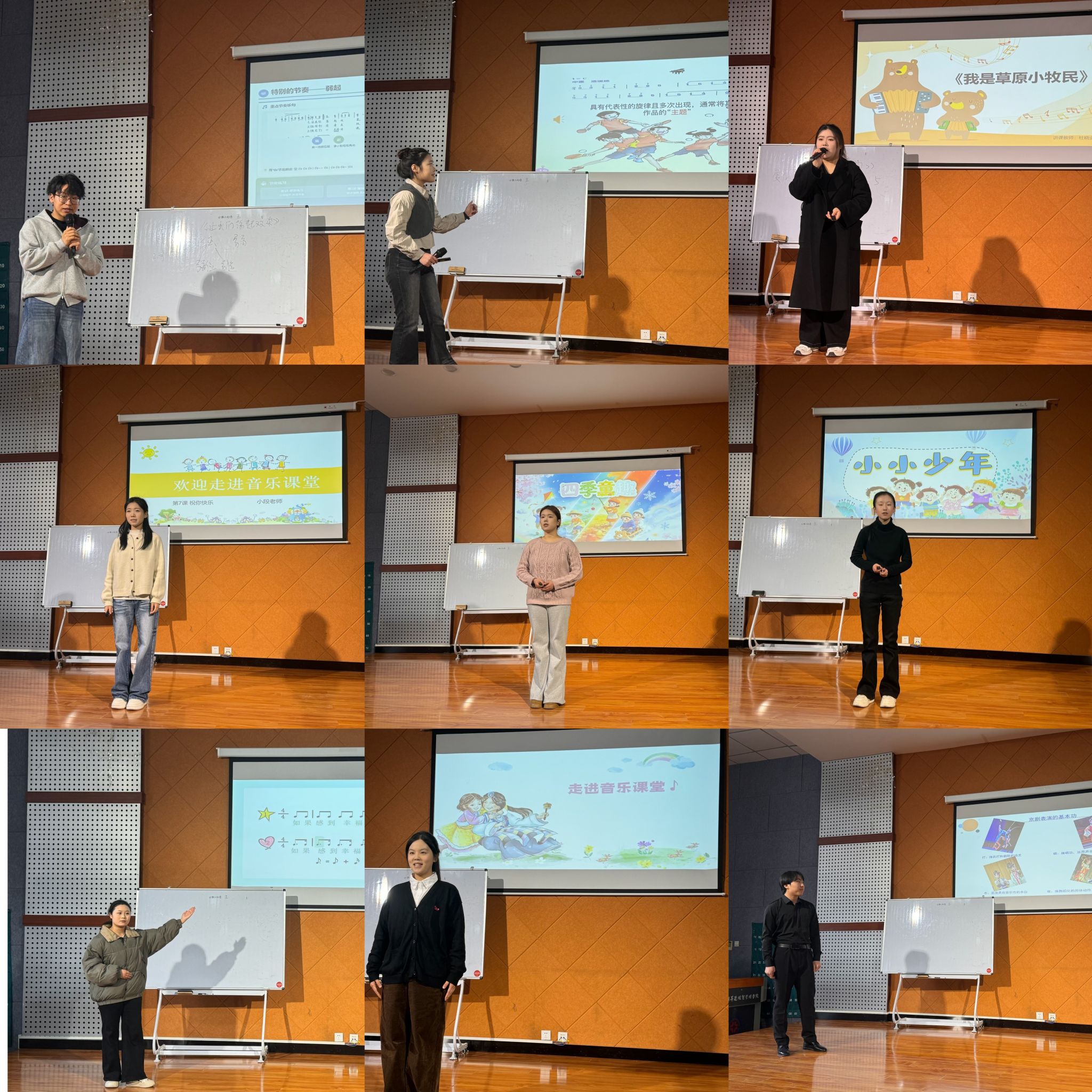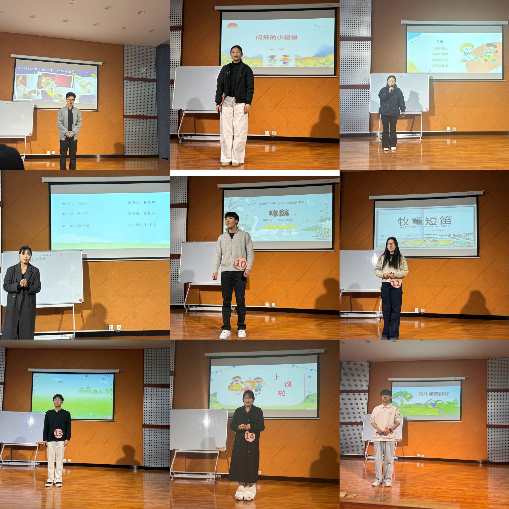 参赛者的讲课比赛内容需符合《义务教育艺术课程标准(2022年版)》要求,在教育部教材审定委员会审查通过的义务教育音乐教科书中选择,并在指定时间内完成讲课内容。入围决赛的2023级和2024级音乐教育专业的参赛选手紧扣课程标准,围绕教学目标精心设计教学内容,运用符合内容特点与学情的教学方法,使用教学媒体和教具在讲台上展现了专业的教学技能。部分参赛者的教学设计独特,教学效果优异,体现了本届赛事所倡导的突出音乐教学的审美性、情感性、实践性、创造性、人文性的理念。