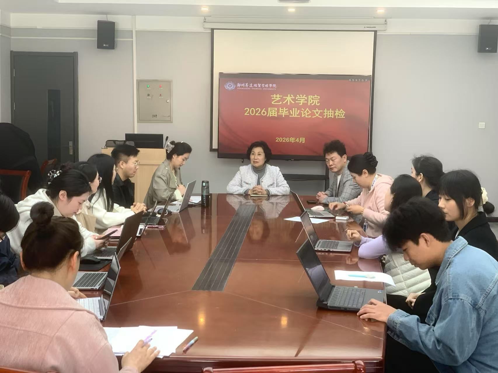 为切实加强毕业生论文质量管控,规范论文指导与审核流程,4月1日上午,艺术学院在会议室组织开展2026届毕业生论文抽检工作。院长吴柏林、副院长池浩东,各专业教研室主任及论文负责人参加此次抽检活动,共同筑牢毕业生论文质量防线。
