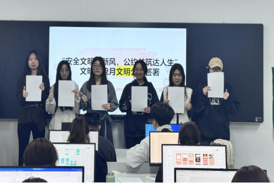 为积极响应学校“安全文明树新风 健康你我达人生”文明礼貌月活动号召,着力营造安全有序、文明和谐、积极向上的校园氛围,4月1日,2023级视觉传达设计本科班精心组织开展文明礼貌月公约签署活动,引导全体同学将文明规范内化于心、外化于行,让安全意识入脑入心、扎根心底。