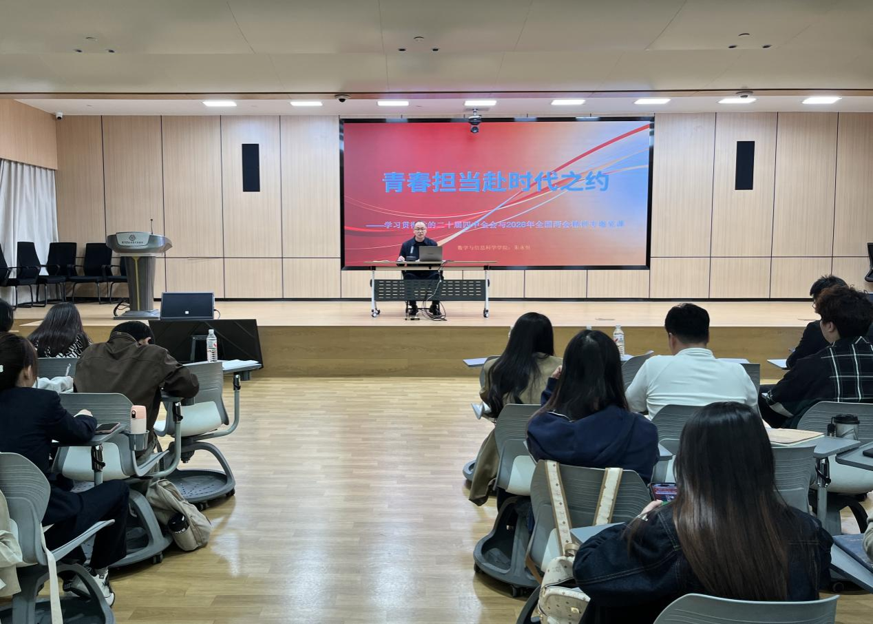 议程进入第二阶段,数学与信息科学学院党委书记朱永恒同志以《青春担当赴时代征程》为题,为学员讲授专题党课第一讲。课程围绕回望“十四五”发展成就、展望“十五五”规划蓝图、以初心践行使命担当三个方面展开,通过条理清晰的内容框架与系统深入地讲解,帮助学员进一步深化对党的创新理论理解,明确新时代青年的使命任务与奋斗方向,切实把学习成果转化为担当作为、奋勇争先的青春动力。