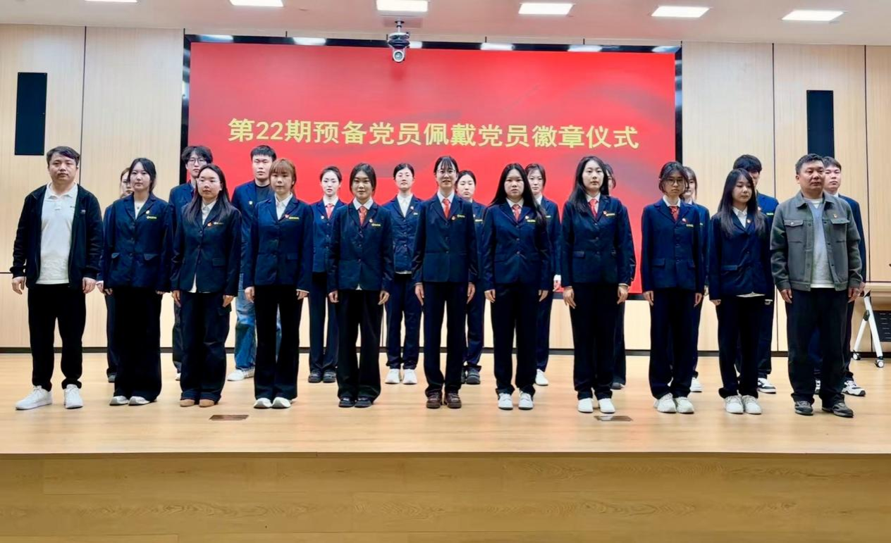 仪式伊始,在庄严的国歌声中拉开帷幕。首先,艺术学院党务组织员刘世举同志与数学与信息科学学院党务组织员王森源同志,为第二十二期预备党员佩戴党员徽章。随后,在领誓人尹红艳同志的带领下,全体预备党员面向党旗庄严宣誓。誓词铿锵有力,充分彰显了青年党员坚定的理想信念与强烈的责任担当。