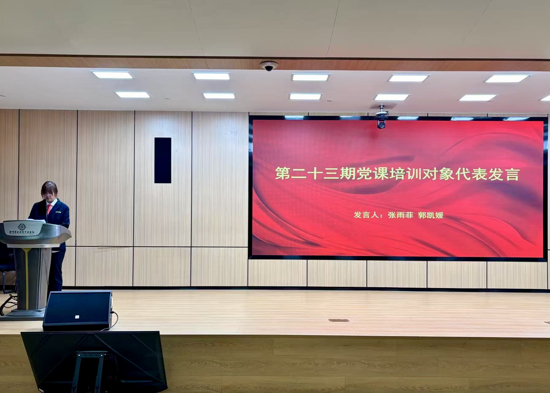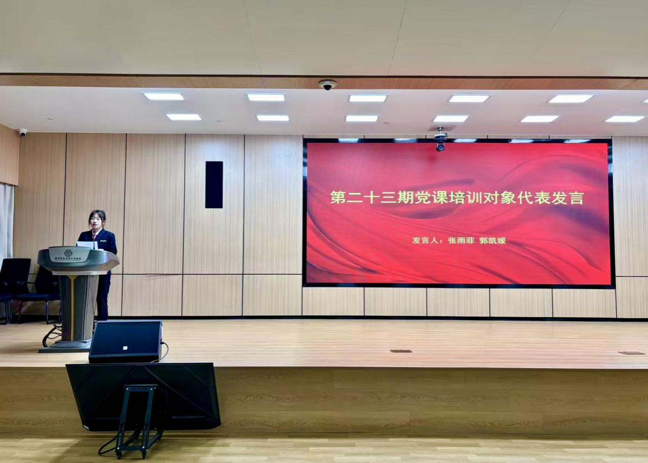 紧接着,第二十三期党课培训学员代表张雨菲、郭凯媛分别发言,她们结合自身学习成长经历,分享思想感悟,表达了认真学习党的理论、积极向党组织靠拢、争取早日入党的坚定决心。随后,尹红艳同志就本期党课培训的学习安排、纪律要求与考核标准进行说明,引导学员端正学习态度、严守培训纪律,为学员明确了学习方向与行为准则。