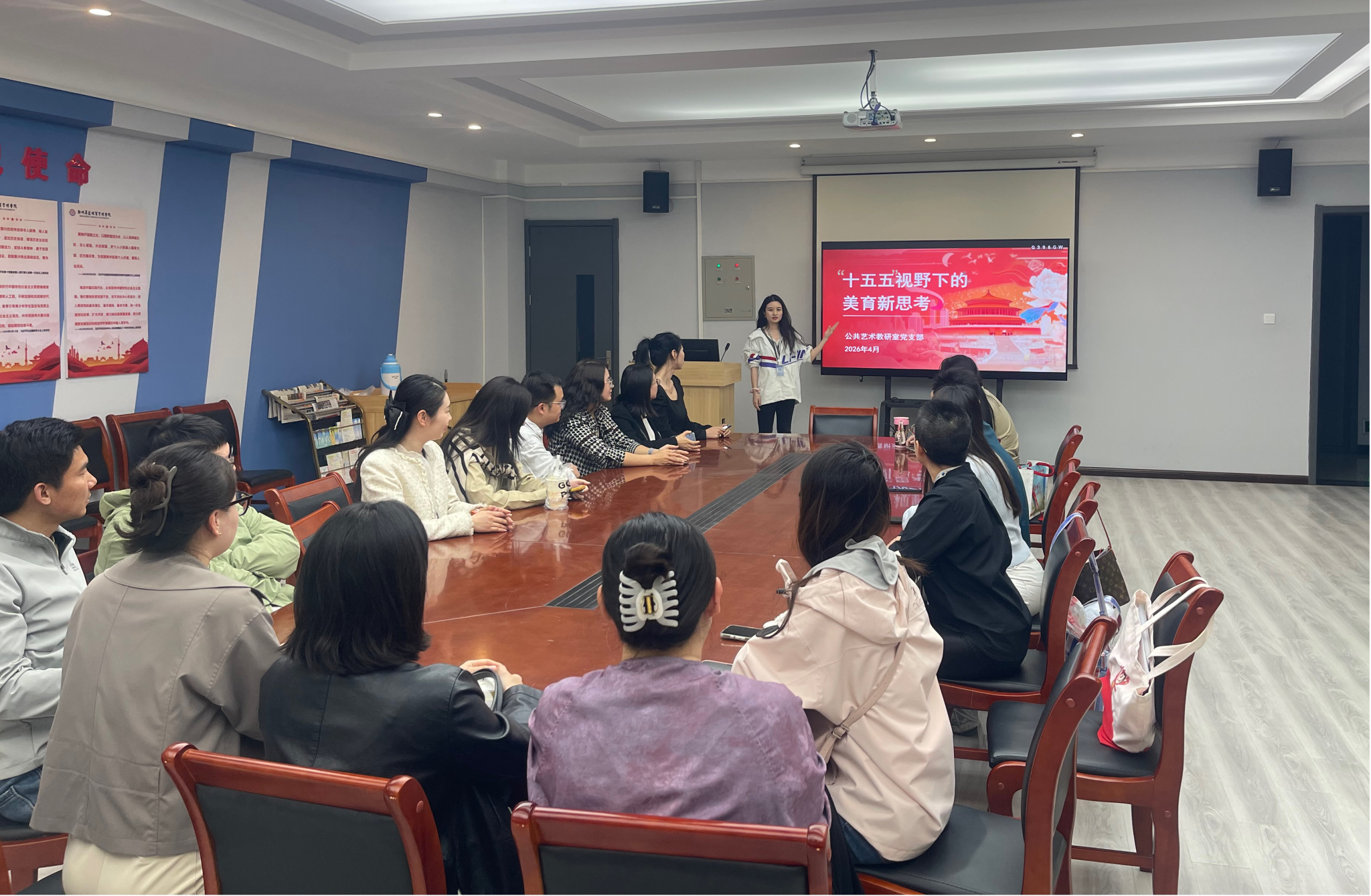 4月16日,公共艺术教研室党支部组织全体党员在艺术学院411会议室开展“‘十五五’视野下的美育新思考”主题党日活动。本次活动由党支部成员张昕雯主持,旨在围绕国家“十五五”规划的前瞻布局,深入探讨新时代美育工作的使命、路径与创新方向,推动美育教学与国家发展战略同频共振。