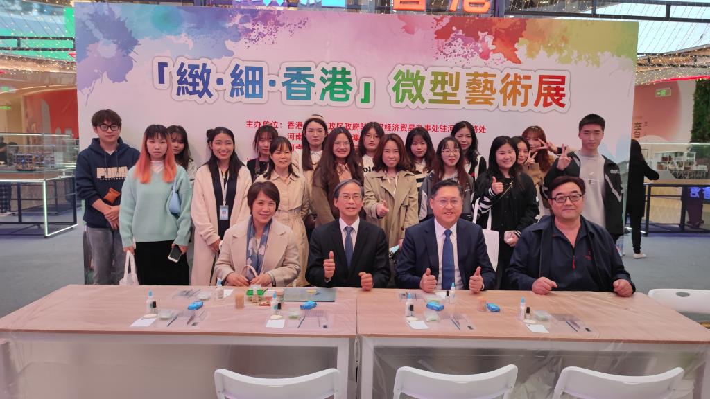 10月29日上午由香港特别行政区政府驻武汉经济贸易办事处驻河南联络处与河南省人民政府港澳事务办公室及河南省文化和旅游厅联合举办,郑州市文化广电和旅游局协办的【致·细·香港】微型艺术展在郑州新田360广场二期绿地新都会店A馆一楼中庭举行。我校执行董事王新奇博士、实训处程敏姿处长、发展规划处沈定军处长、艺术学院副院长夏瑞芳及学院师生代表应邀参加了艺术展。